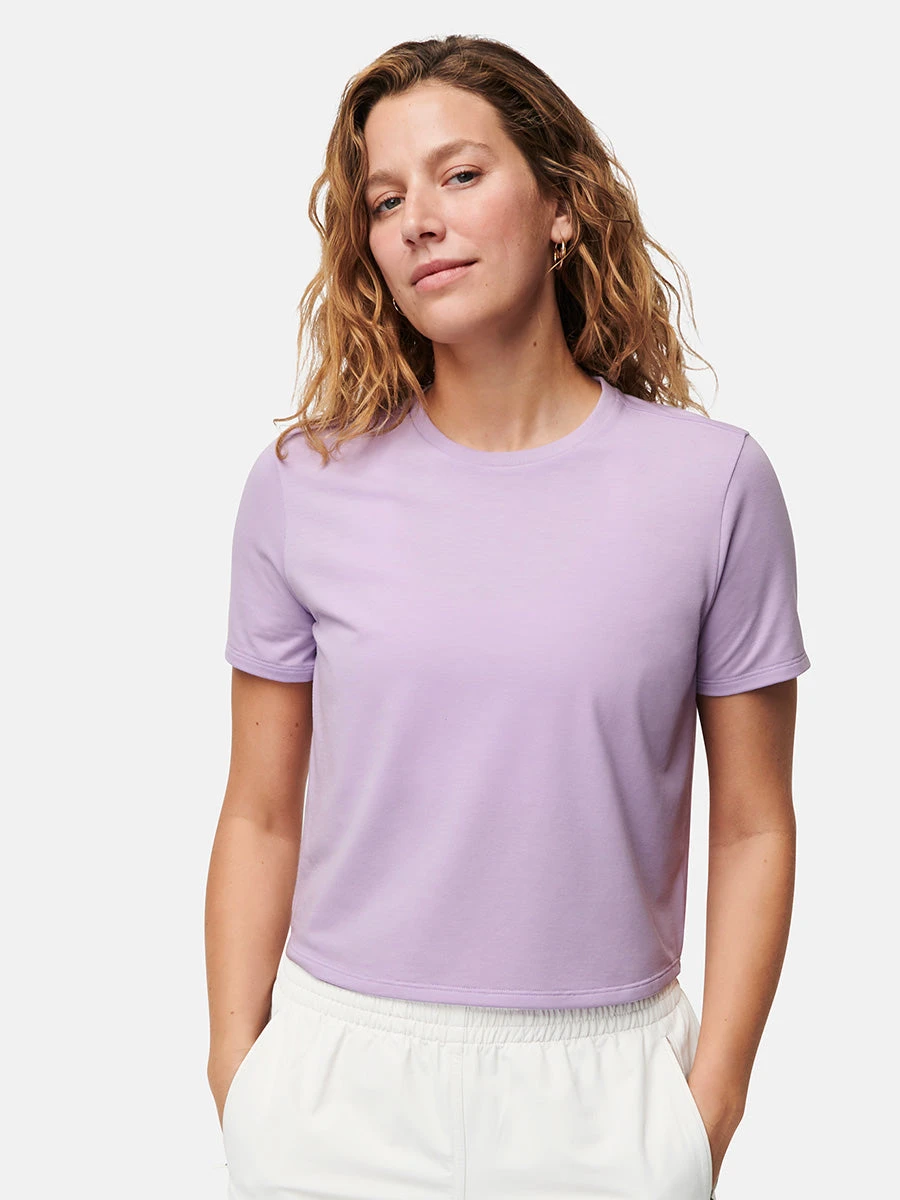 Your versatile t-shirt for everyday activity. Made in our performance cotton blend, Sweatee. Sweat-wicking and soft, with a slightly cropped fit. Product was formerly called Sweatee T-Shirt.