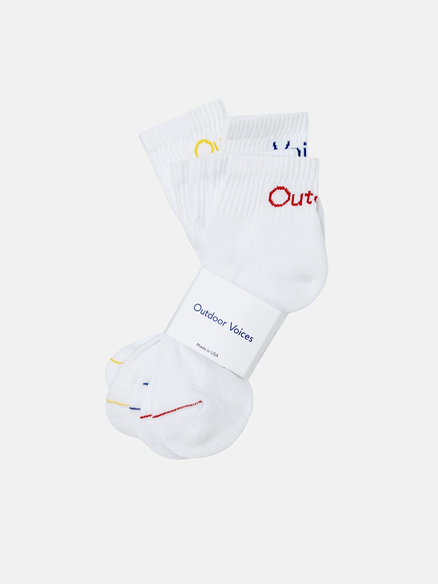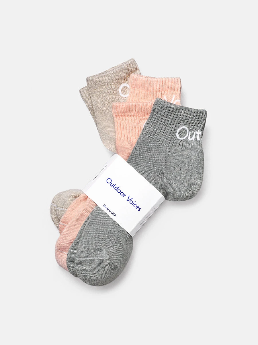 Sold in a pack of three, these ankle socks are designed for casual exercise and feature a reinforced toe and heel, rib around the ankle, and cushion on the bottom. Get moving and have fun! Made in the USA. Product was formerly called Rec Ankle Socks 3-Pack.