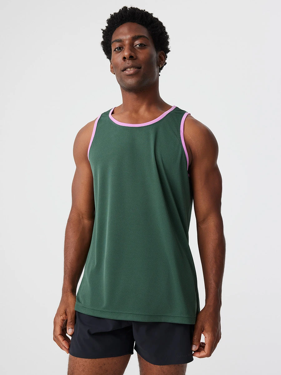 A breezy tank made from 100% post-consumer water bottles. Featuring bright, contrasted pipping for a pop of color.