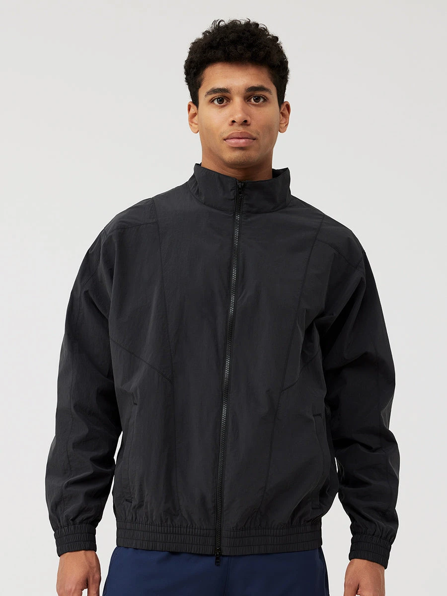 A lightweight, unisex track jacket for to-ing, fro-ing, warming up, and cooling down. Featuring our water-resistant RecNylon fabric, a two-way zipper, side pockets, and an elastic hem.