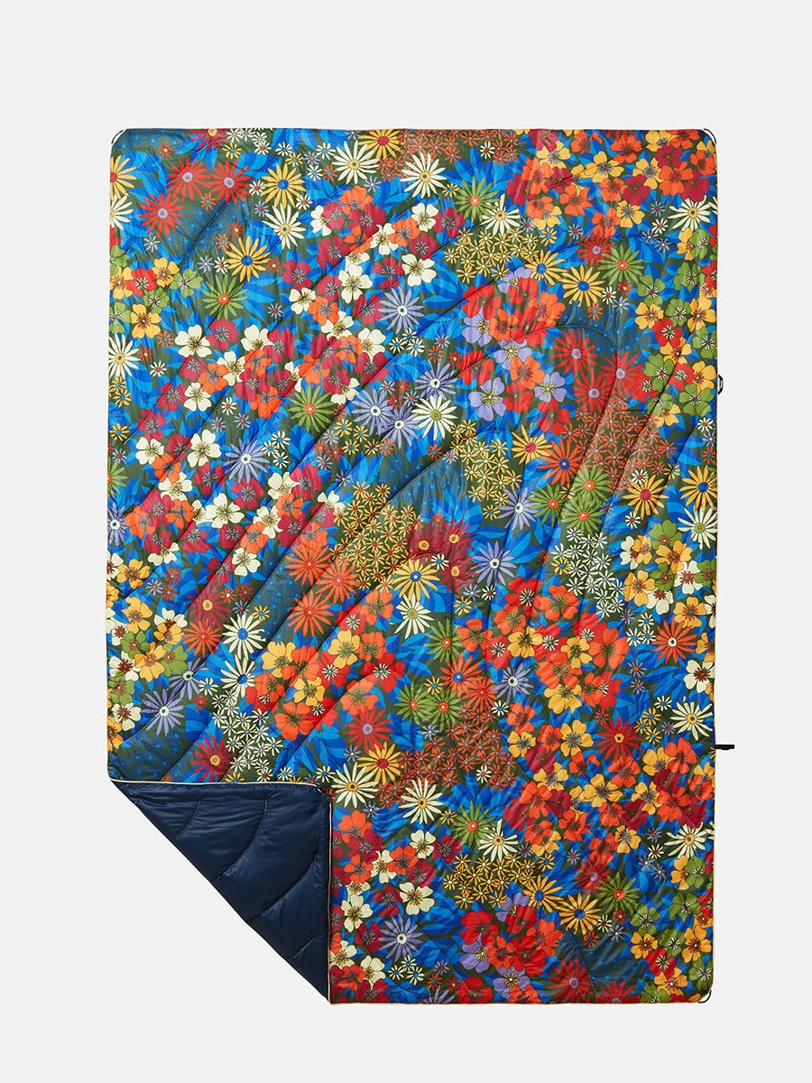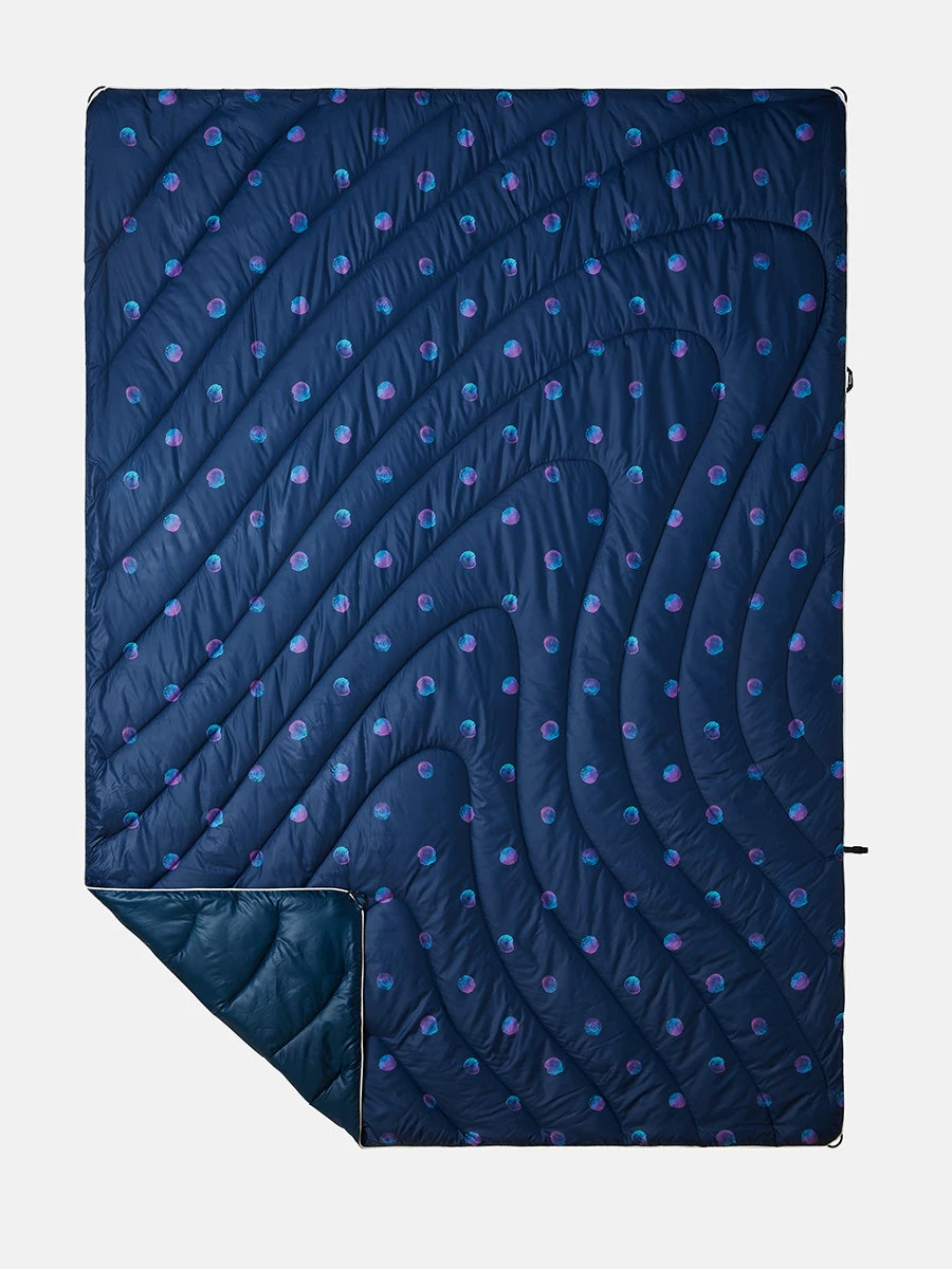 Bundle up. A packable, cozy blanket for all of your outdoor adventures. Insulated with 100% post-consumer recycled materials, featuring topographic stitching, a weather-resistant shell, and a cape clip for hands-free wear.