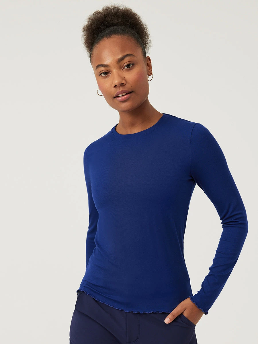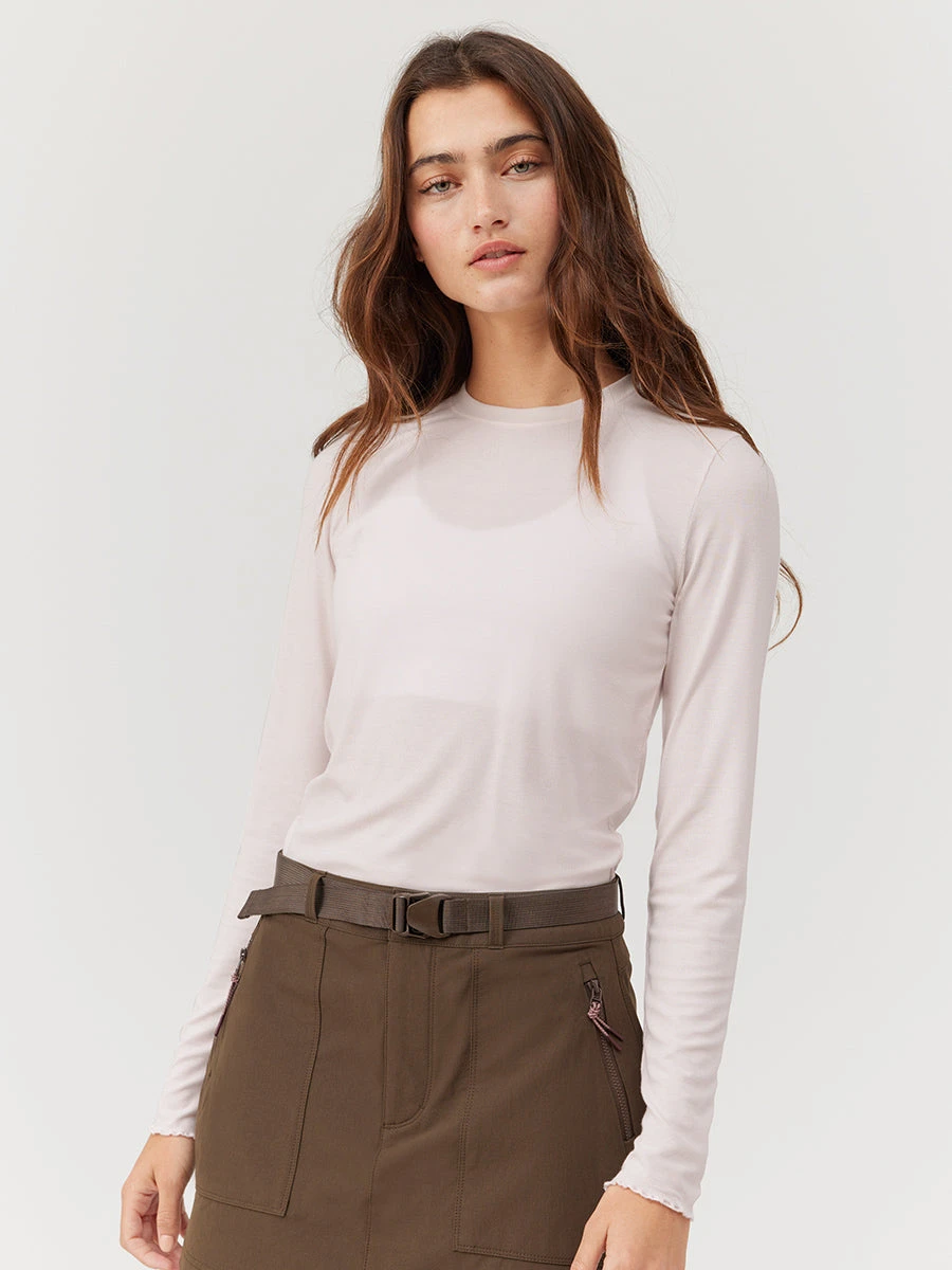 Lightweight and breathable, this easy-layering longsleeve is soft, stretchy, and surprisingly warm. Featuring our slightly ribbed fabric, lettuce hem details, and an effortless slim fit made for everyday outfitting. Product formerly called SheerRib Longsleeve.