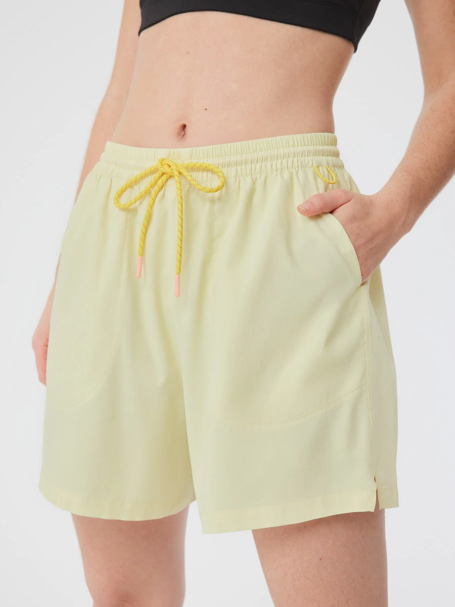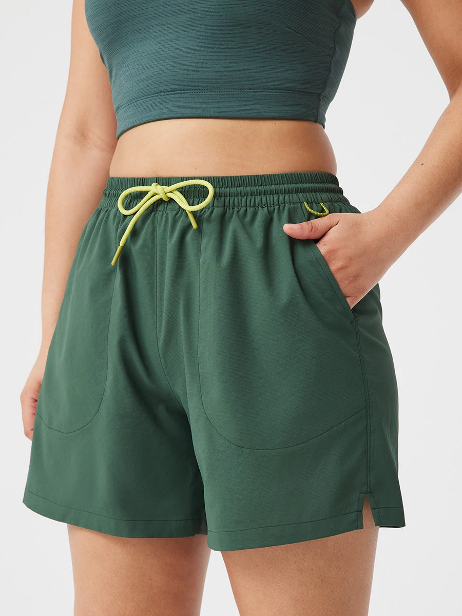A cooling, lightweight, quick-drying short designed for versatile outdoor recreation. Made in SolarCool with SPF 50 protection, featuring a mesh panty liner, two roomy pockets, a carabiner loop, and a zip-secure pocket.
