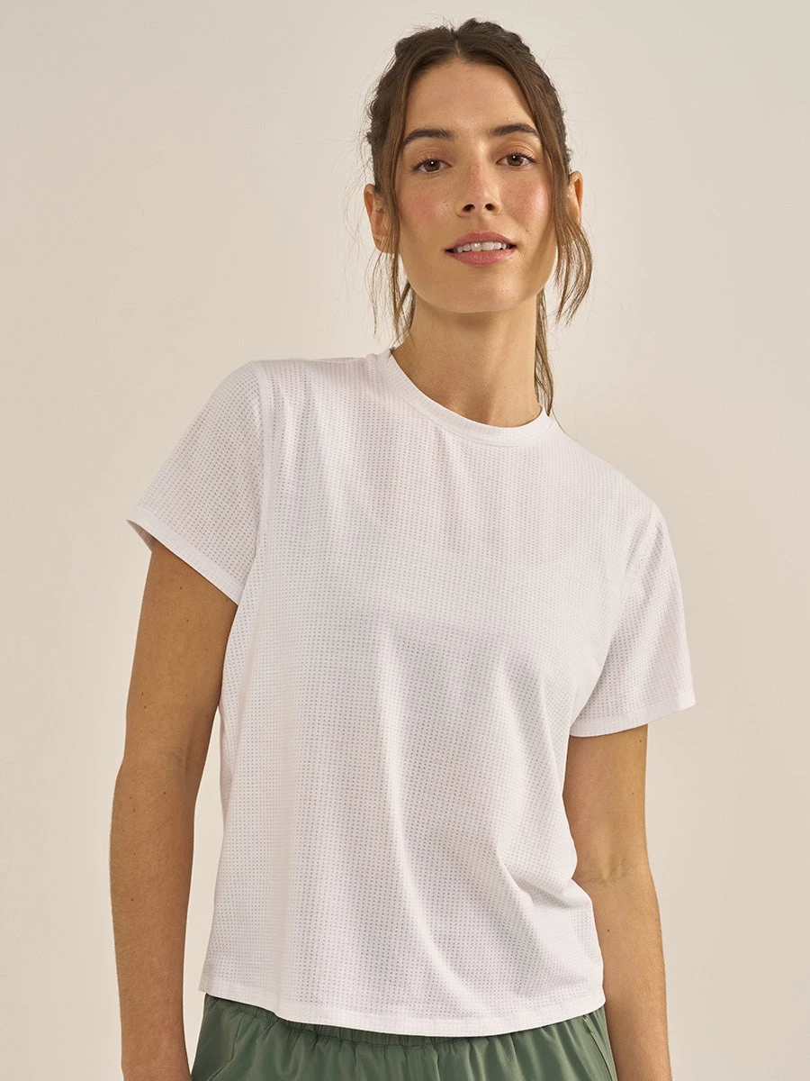 When sweat strikes, ThinkFast. Designed to breathe easy and move moisture away from your skin, this technical top features built-in cooling power to keep you comfortable and chafe-free from start to finish.