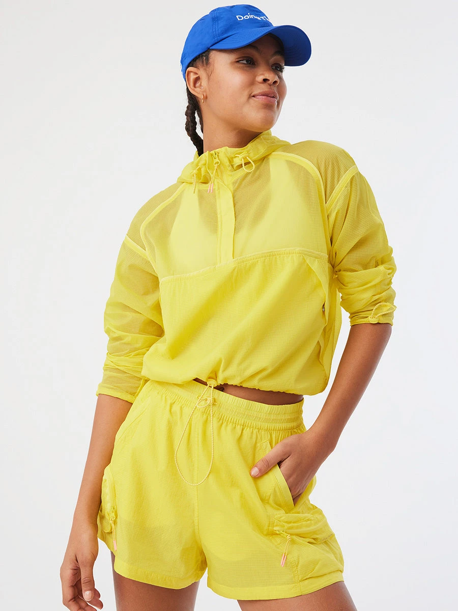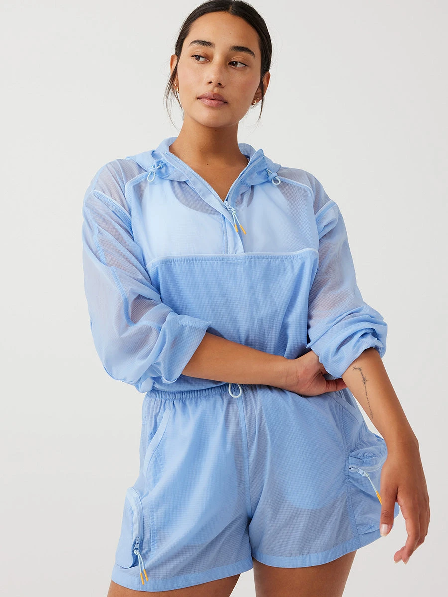 A pullover jacket built to block the breeze. Made in Breaklite, featuring bungee cinches, a roomy kangaroo pocket, and a back pocket to pack it all in.